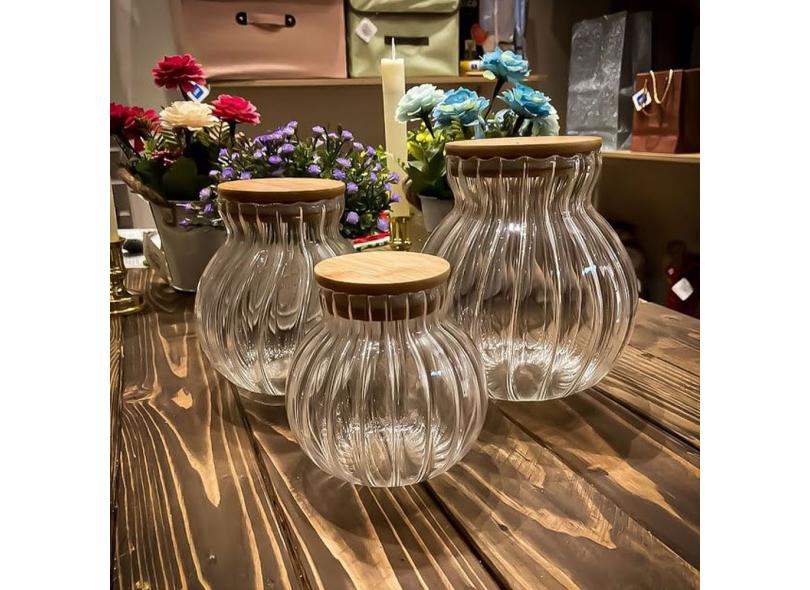 Pote Hermetico Vidro Porta Mantimento Tampa Bambu 900ml