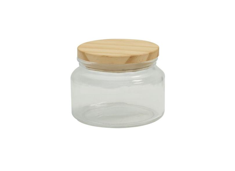 POTE VIDRO HERMÉTICO MANTIMENTO C/TAMPA DE MADEIRA 350ml