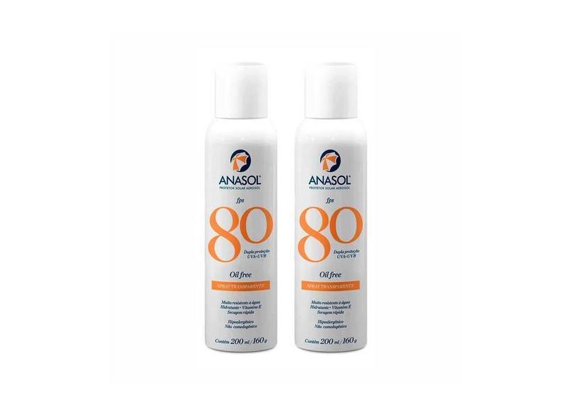 2 Protetor Solar Aerosol Spray Transparente Fps80 200ml - Anasol