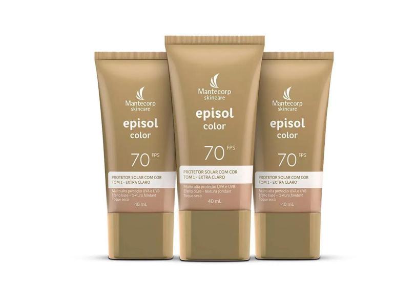 3 Protetor Solar Episol Color Tom 1 Extra Claro Fps 70 40Ml