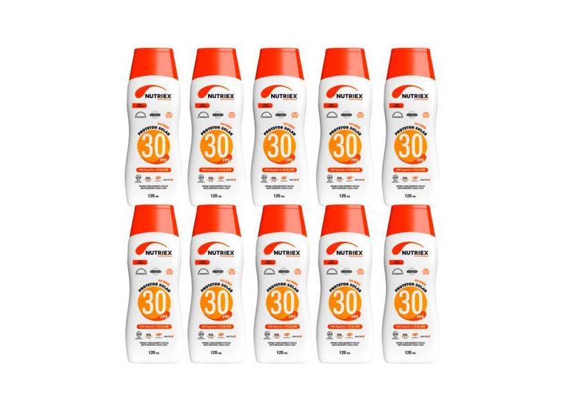 Kit 10 Protetor Bloqueador Solar Fps 30 120ml Nutriex Fator 30 bloqueador sol praia piscina pele creme hidratante proteção obra trabalho pedreiro servente canteiro construção civil uv uva uvb raios ultravioleta