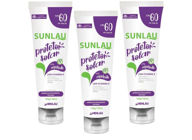 Kit 3 Protetor Bloqueador Solar Repelente Sunlau 60 Fps Uva/Uvb
