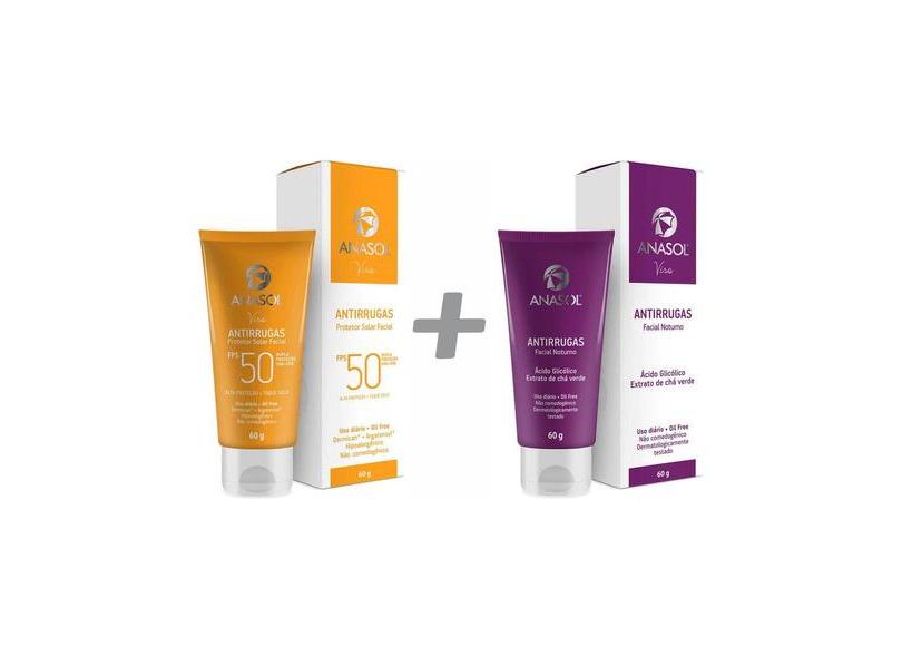 Kit Antirrugas (fps50 + Facial Noturno) - Anasol protetor solar sun hidratante aloe vera hidrata oil free toque seco
