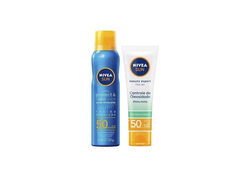 Nivea Kit – Protetor Solar Spray Protect & Toque Seco FPS50 200ml + Protetor Solar Facial Sun Beauty-Unissex