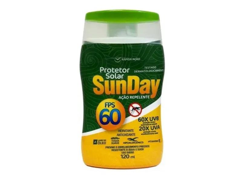 Protetor Solar Fps 60 Corp Sunday 120 Ml C/repelente 6 Und