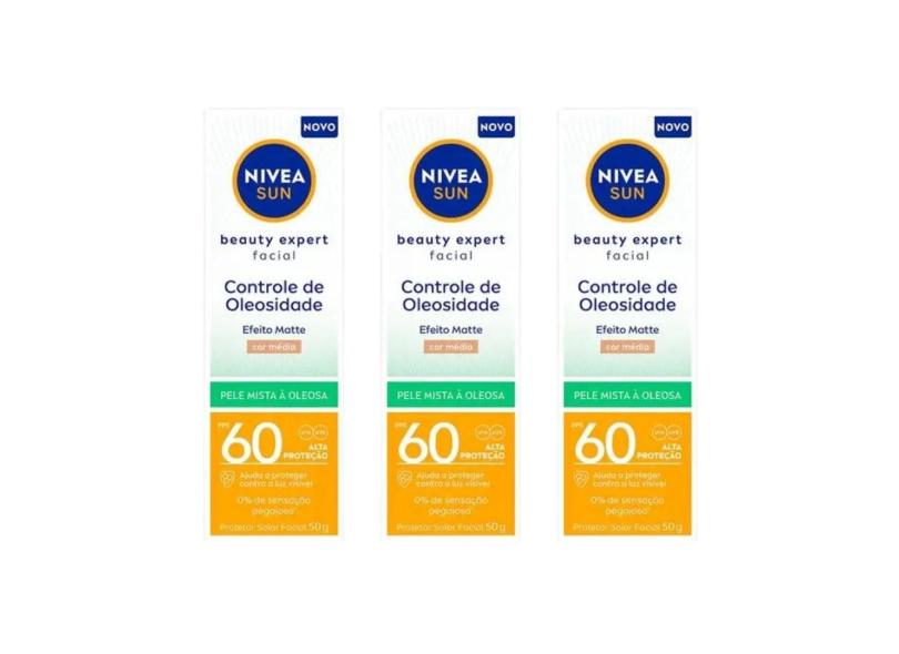 Protetor Solar Nivea Facial 50G Beauty F60 Cor Media-Kit 3Un