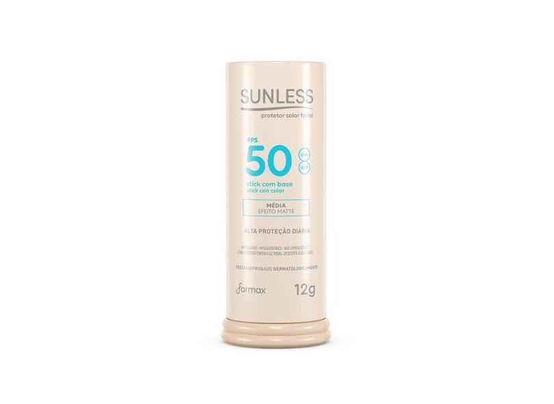 Protetor Solar Stick C/ Base Media 50 Fps Matte Sunless 12G - Farmax
