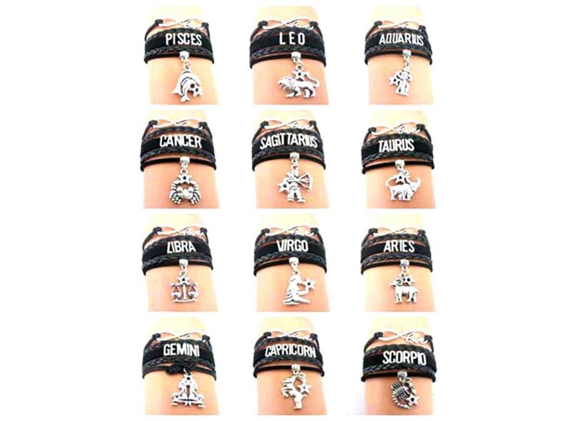 12 Constela??O Zodiac pu pulseira artesanal carta pingente pulseiras