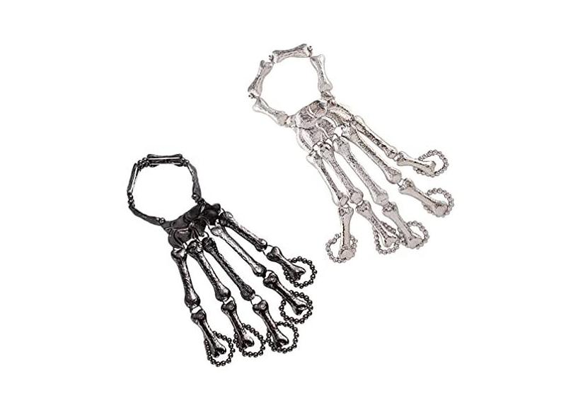 ABOOFAN 2Pcs Pulseira Halloween Esqueleto Dedo Pulseira Mão Do Crânio Dedo Ligação Pulseira Pulseira Do Punk para As Mulheres Costome Halloween Suprimentos