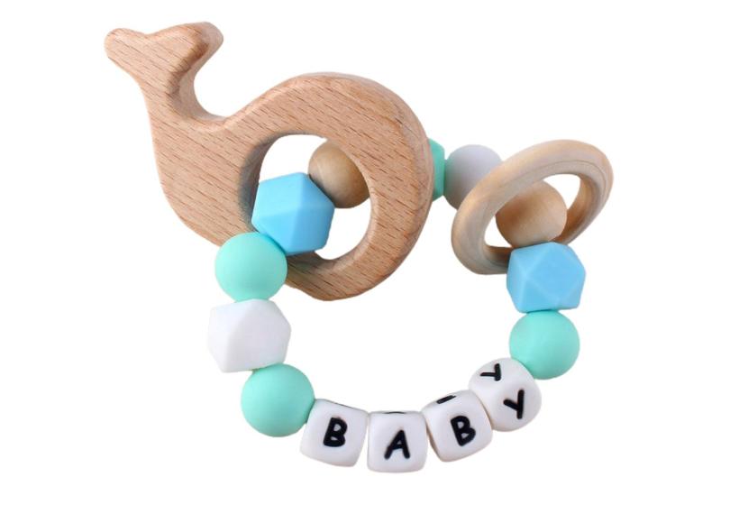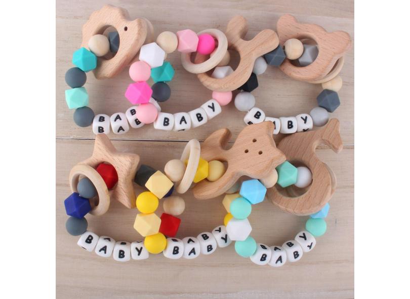 Agarrando atividade agitador pulseira teether anel mastigar pulseira