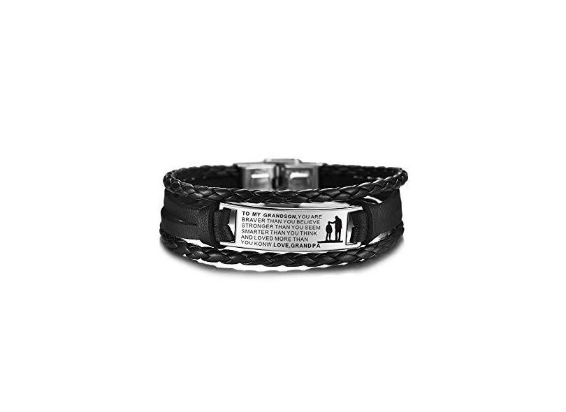 COMTRUDE Pulseiras ajustáveis to My Grandson, pulseira inspiradora de aço inoxidável premium, pulseira para neto da vovó e do vovô, o melhor presente para o neto (atualização) Preto