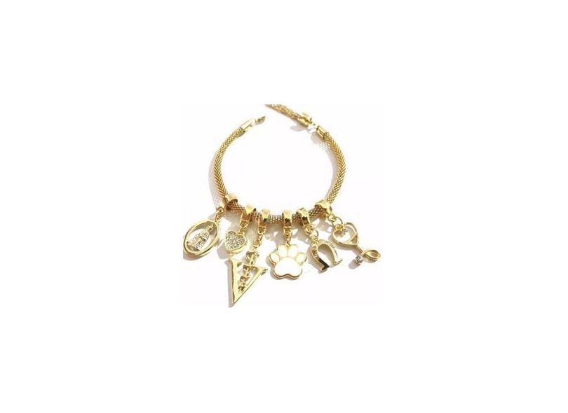 Linda Pulseira Veterinária Berloques Folheado a Ouro 18k