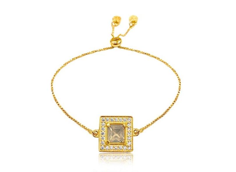 Pulseira Ajustável Quadrada Zircônias Banhada a Ouro