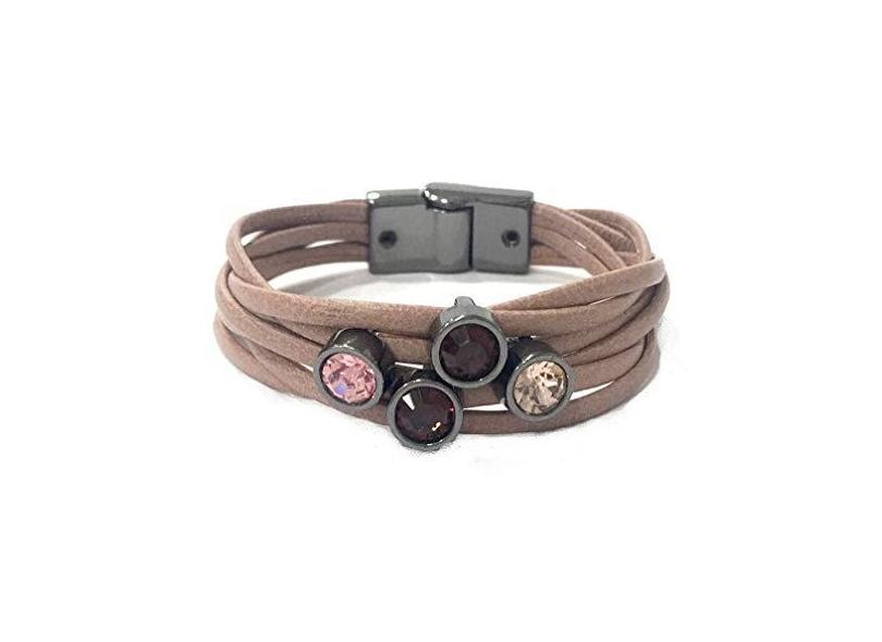 Pulseira Armazem RR Bijoux couro cristais redondos rose