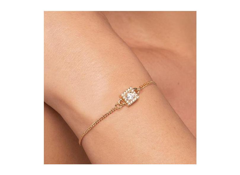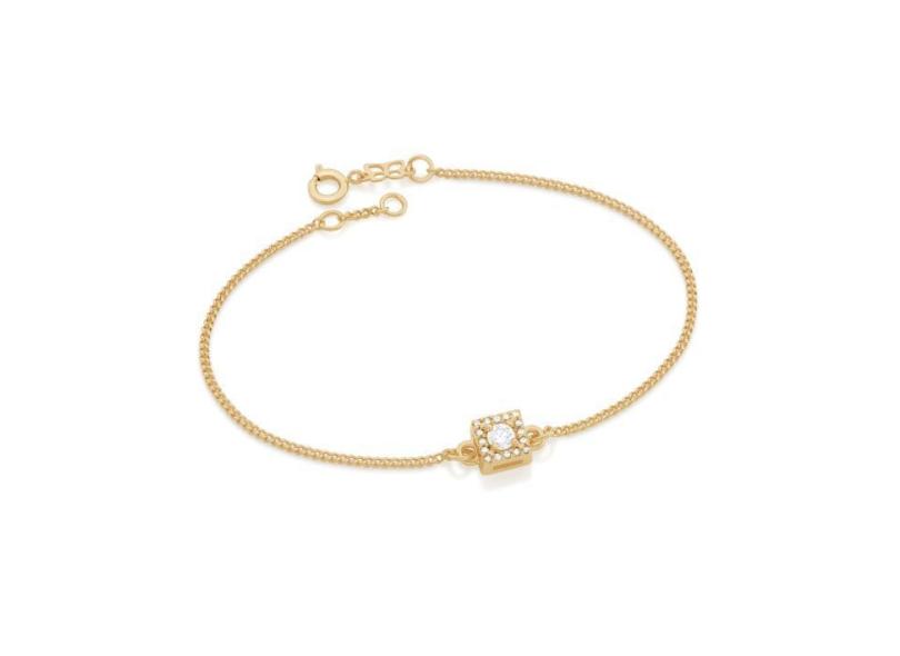 Pulseira Banhado Ouro Berloque Quadrado Zircônias s