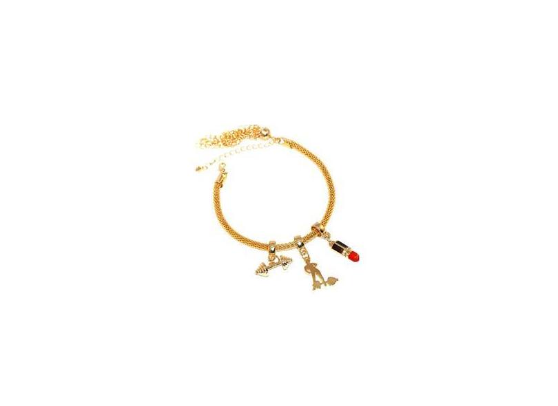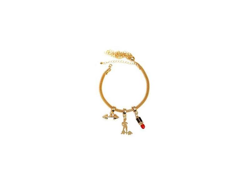 Pulseira Berloque Batom Musculação Fitness Folheado 18k