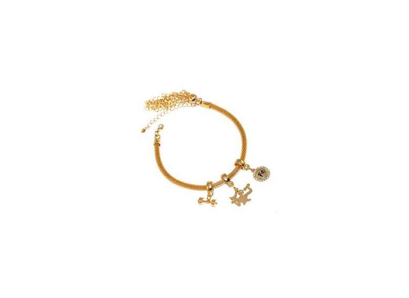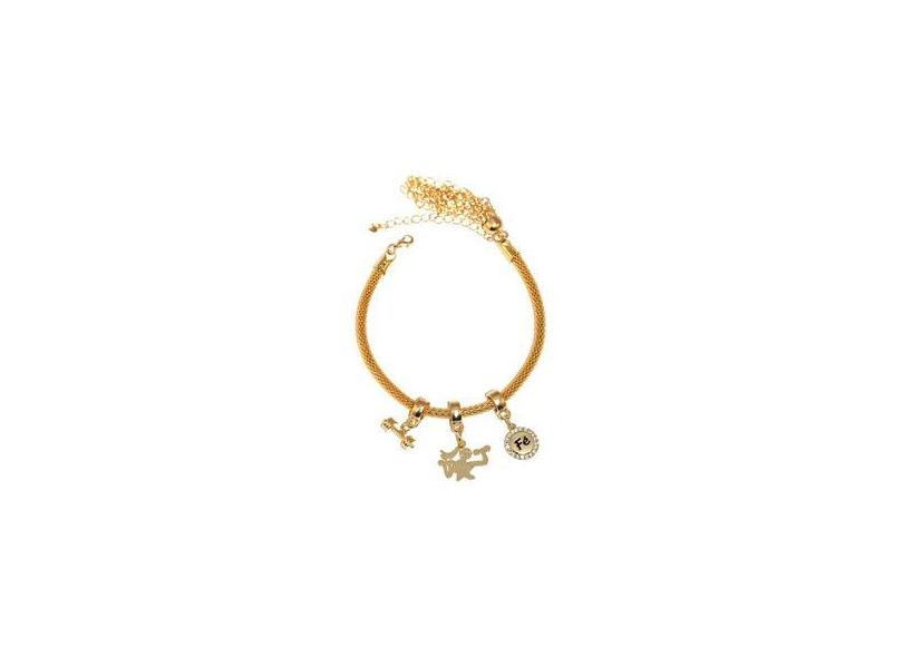 Pulseira Berloque Halter Foco Fé Fitness Folheado Ouro 18k