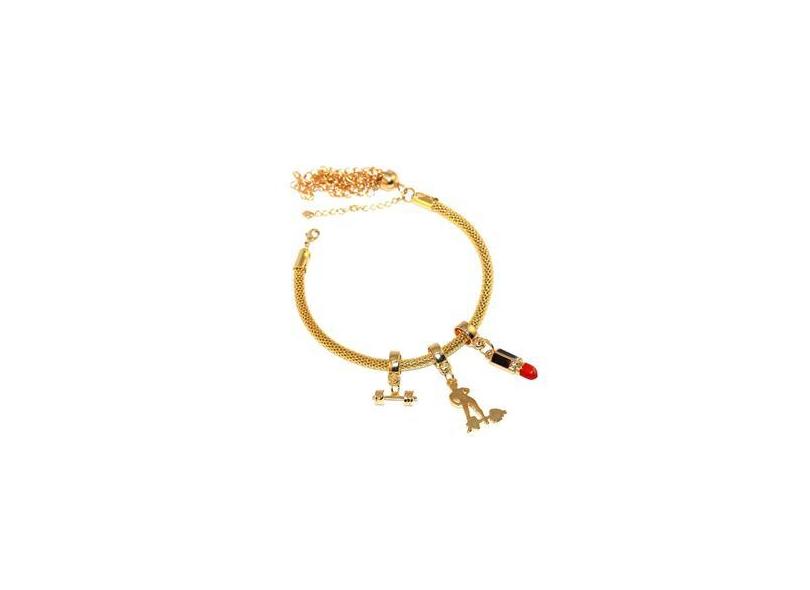 Pulseira Berloque Musculação Halter Peso Folheado Ouro 18k