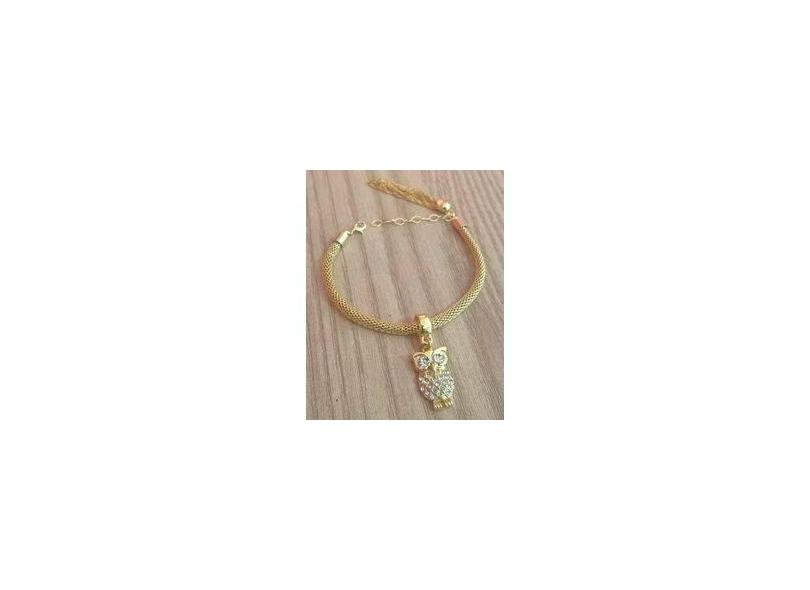 Pulseira Berloques Professora Coruja Mãe Avó Folheado A Ouro