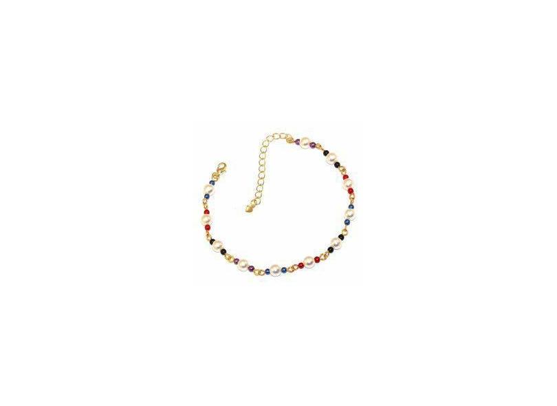 Pulseira Bolinhas Coloridas Linda Folheada A Ouro 18 K