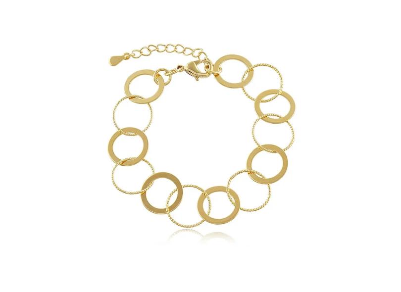 Pulseira Com Círculos Lisos E Trançados Banhada Em Ouro 18K