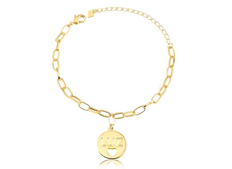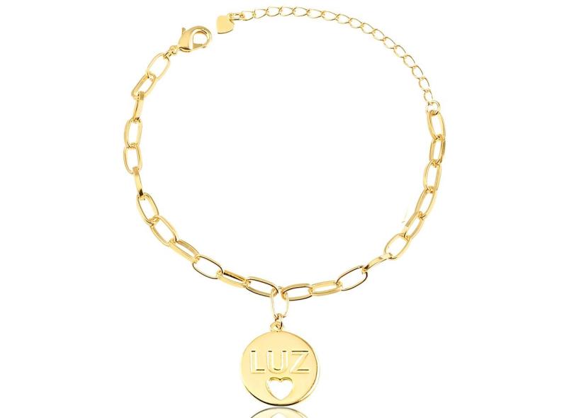 Pulseira com corrente cartier e medalha Luz folheada em ouro 18k