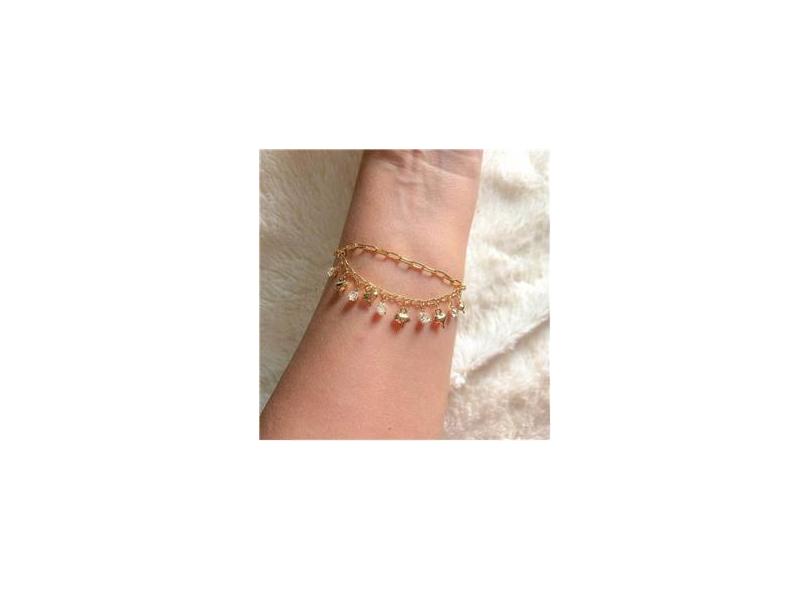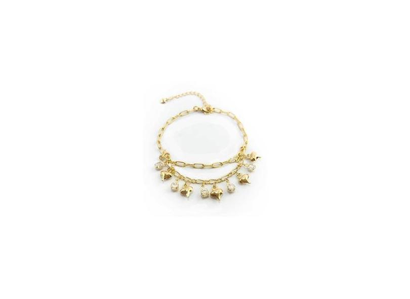 Pulseira Coração e Pedrinhas de Zirconia Banhada a Ouro 18K