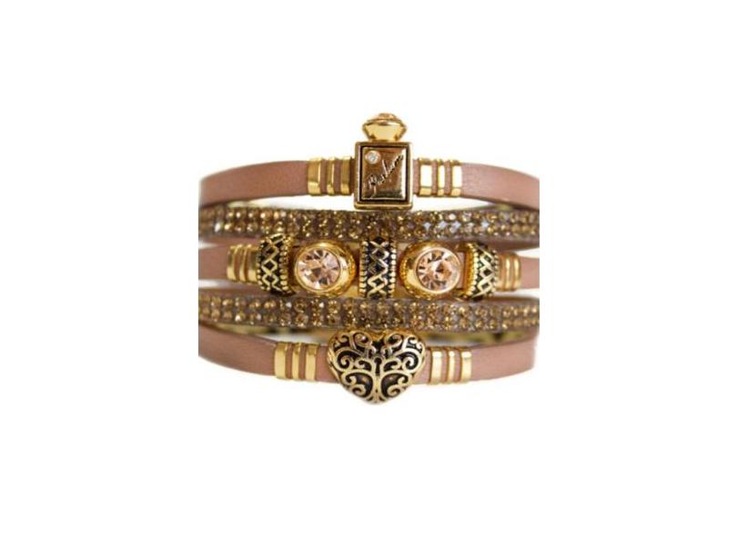Pulseira couro Armazem RR Bijoux coração perfume nude