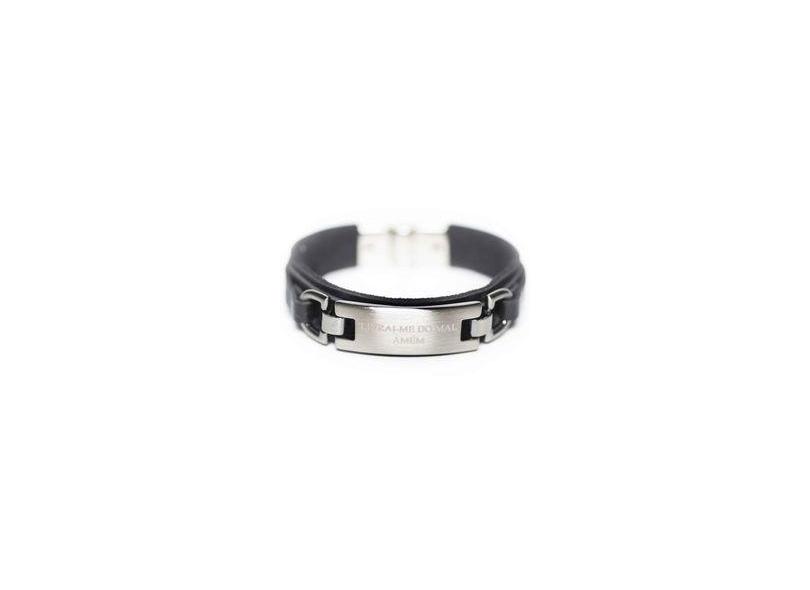 Pulseira Couro Masculina Livrai Me De Todo Mal Marrom