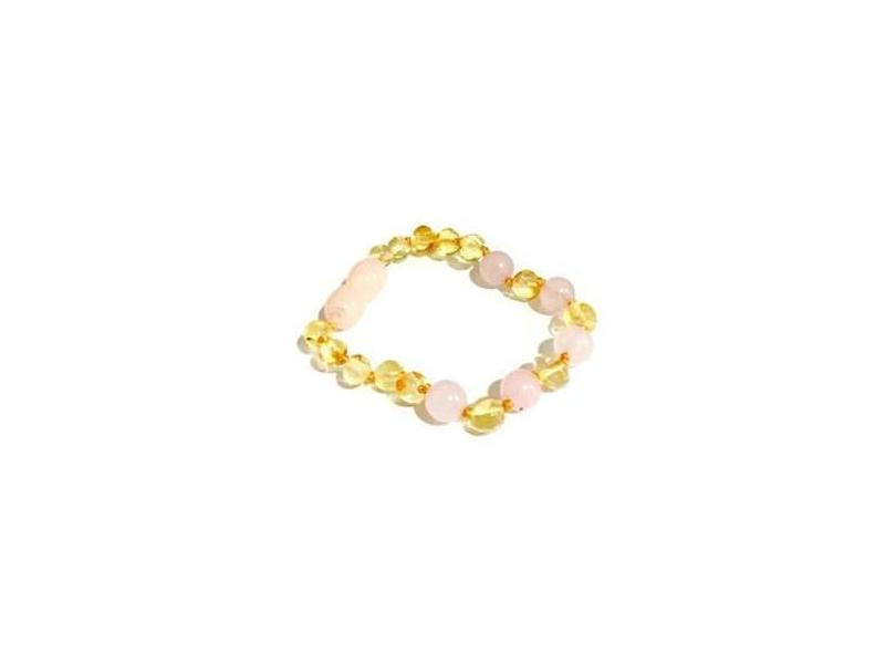 Pulseira de Ambar Baroque Lemon Quartzo Rose 14cm