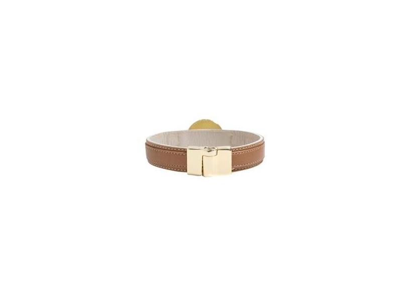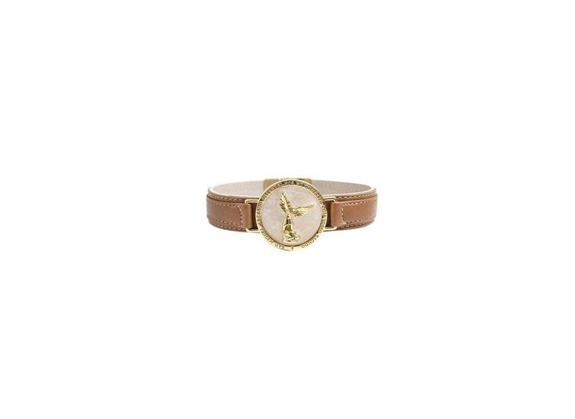 Pulseira de Couro Masculina Feminina Caramelo São Miguel Arcanjo Magnética Justiça