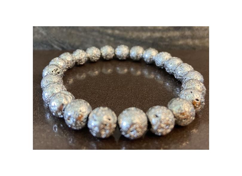 Pulseira De Pedra Natural Vulcanica Prata 8mm
