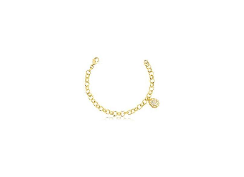 Pulseira Elo Português Com Berloque Balão Banhado a Ouro 18k