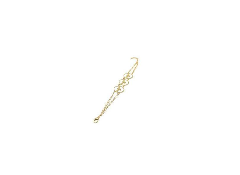 Pulseira Feminina De Chapa Larga Três Pombas Espirito Santo Folheada A Ouro