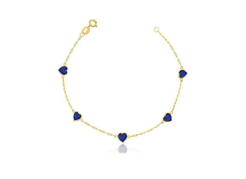 Pulseira Feminina Em Ouro 18k Pedras Coração De Zircônia 5mm Azul Safira