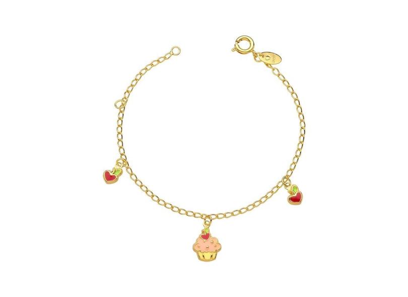 Pulseira Folheada A Ouro Cupcake Cereja.