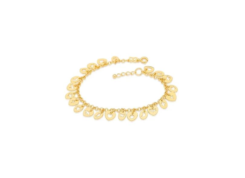 Pulseira Folheada Rommanel Berloques Coraçoes Vazados - 551259