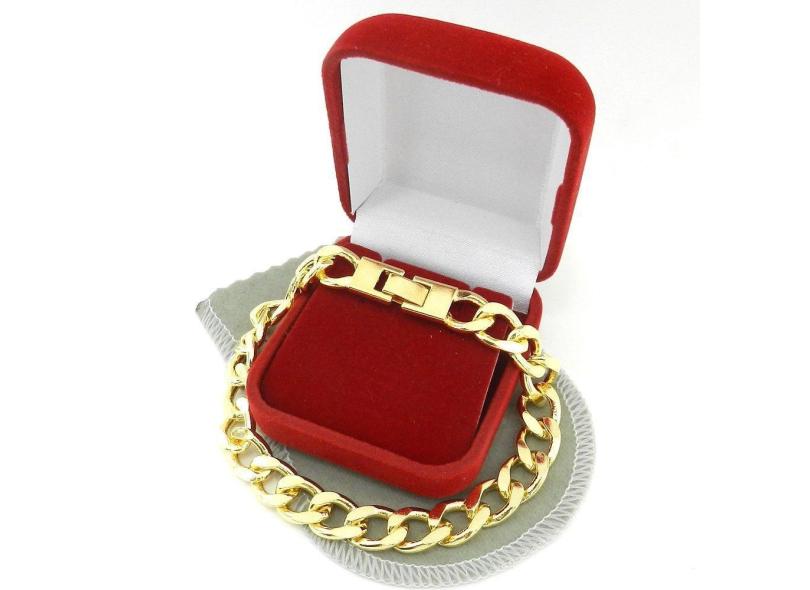 Pulseira Masculina 19cm 1cm Largura Folheada Ouro PL213