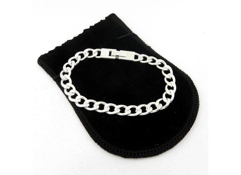 Pulseira Masculina 19cm 7mm Largura Folheada Prata PL127