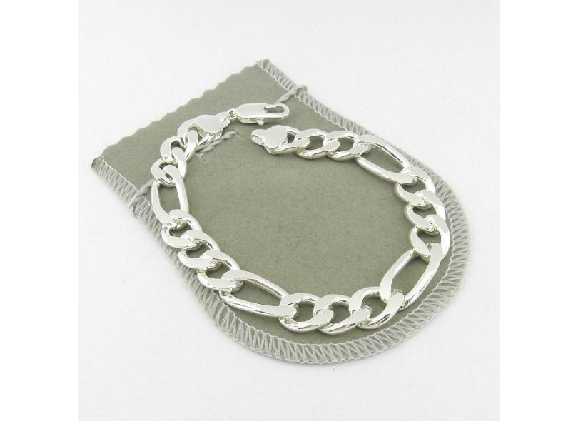 Pulseira Masculina 22cm 1cm Largura Folheado Prata PL122