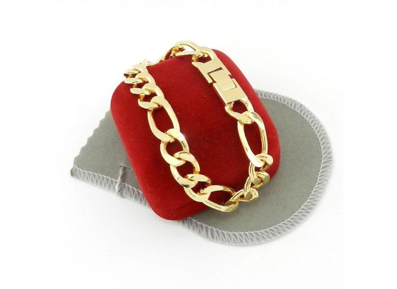 O menor preço encontrado no Brasil para Pulseira Masculina 23cm 1cm Largura Folheada Ouro PL238 atualmente é R$ 487,42.