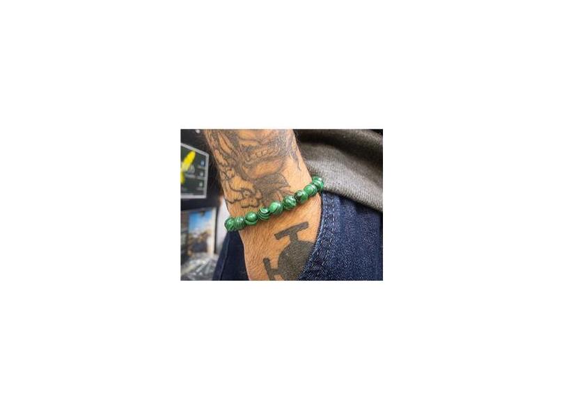 Pulseira Masculina Bolinha Pedra Malaquita Verde 8Mm