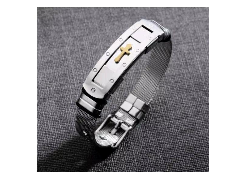 O menor preço encontrado no Brasil para Pulseira Masculina Bracelete Aço Cruz Dourada Trabalhada atualmente é R$ 79,78.
