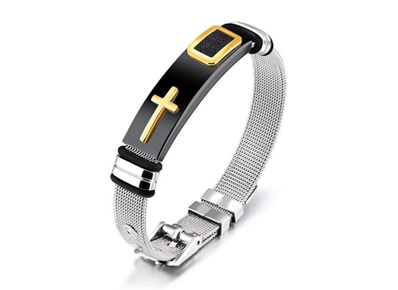 O menor preço encontrado no Brasil para Pulseira Masculina Bracelete Malha de Aço Cruz Preta Dourada atualmente é R$ 67,82.
