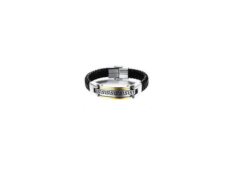 Pulseira Masculina Couro com Filetes em Banho de Ouro 18K