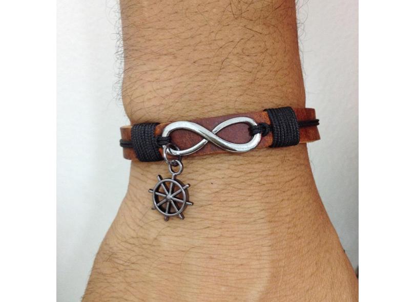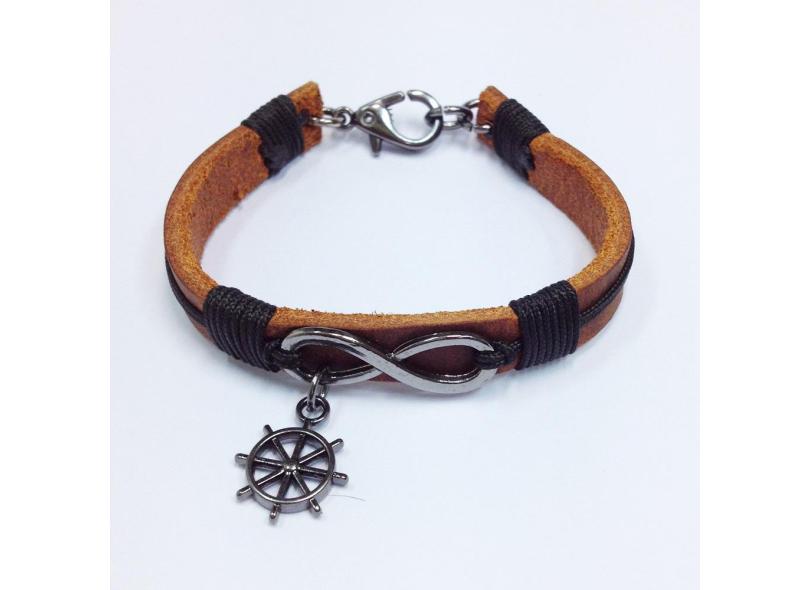Pulseira Masculina Couro Simbolo Infinito Leme Timão