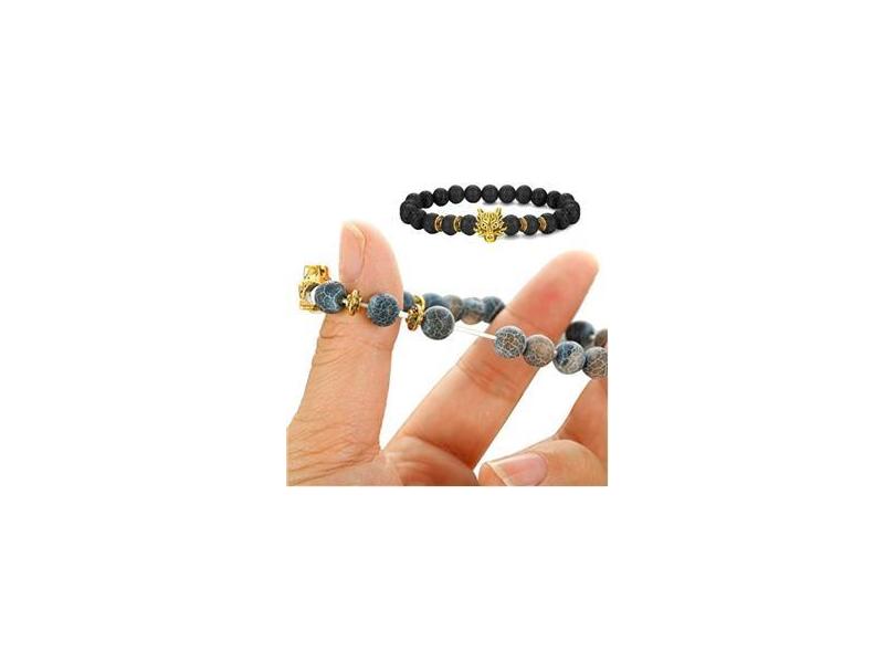 Pulseira Masculina De Bolinhas Dragão Preto Rocha Vulcânica