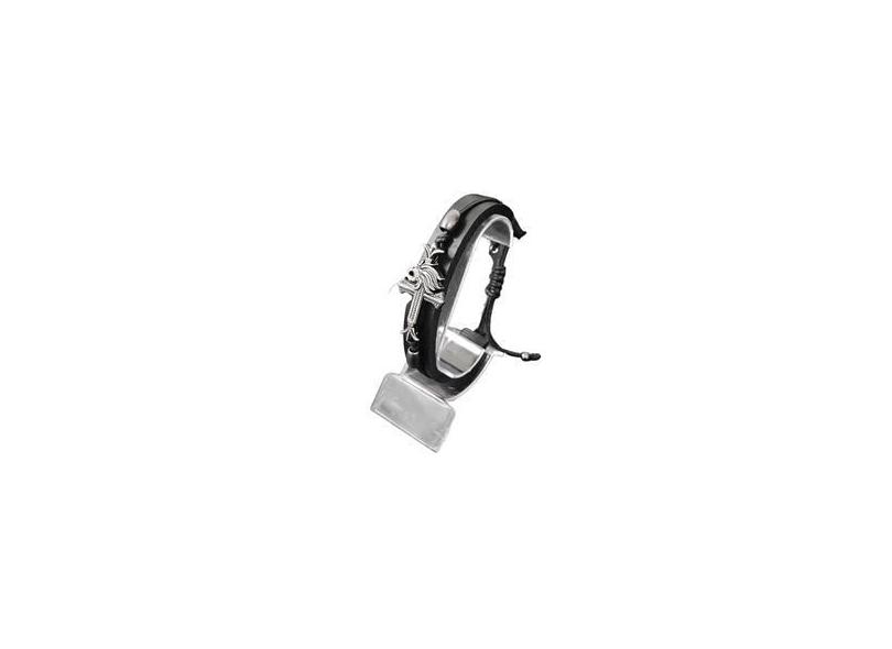 Pulseira Masculina De Couro Leão Negro Ajustável