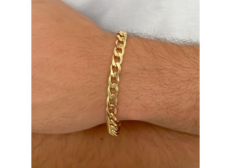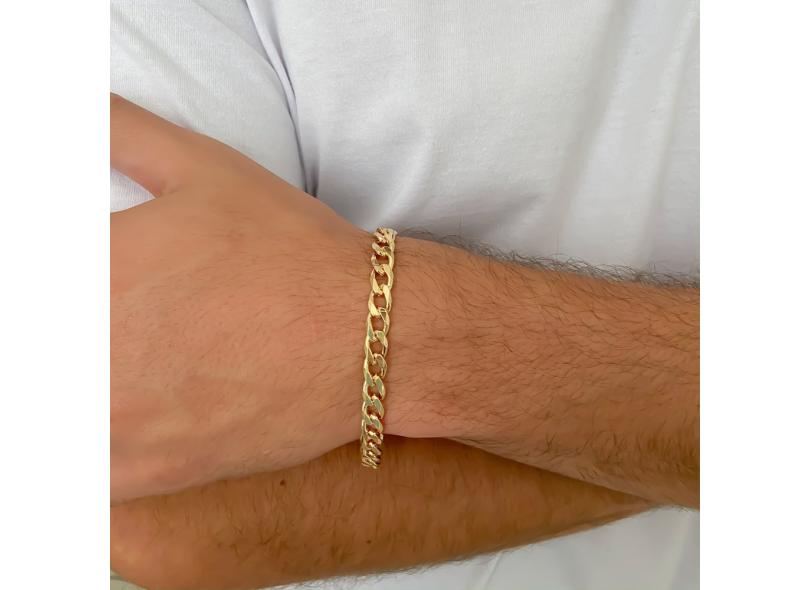 Pulseira Masculina Elo Cadeado 22 Cm Folheado Em Ouro