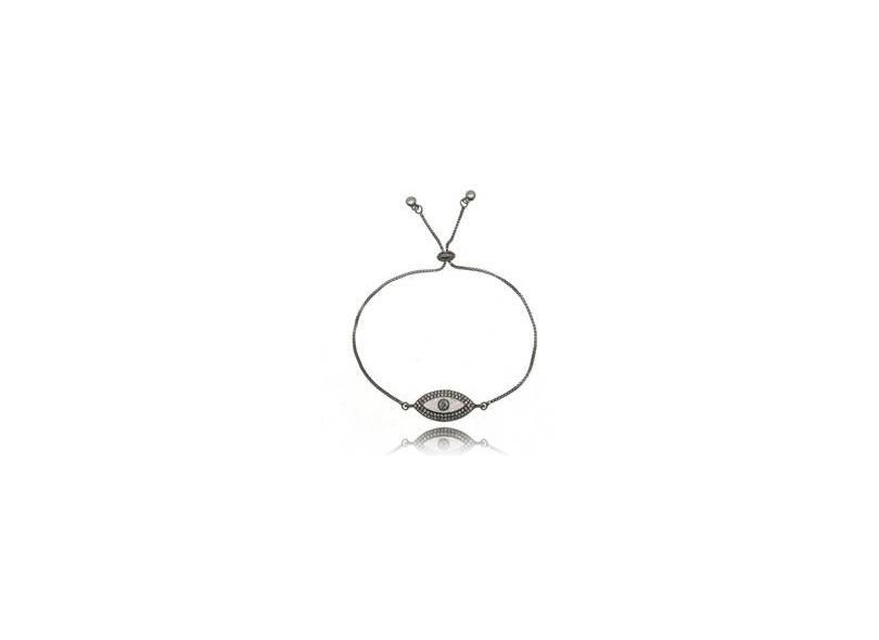 Pulseira Olho Grego Ajustável Madrepérola e Zircônia Branca Semijoia Luxo em Ródio Negro